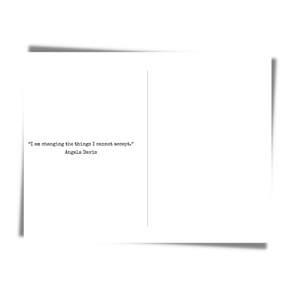 Ignite the spirit of change with this Angela Davis card. The striking design amplifies the quote's call to action, making it a compelling choice for any occasion.